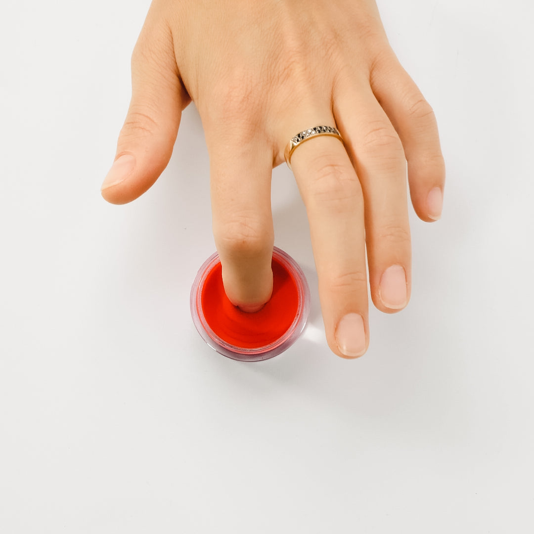 The process is very simple. You start with a classic manicure, cleaning the nail with a delicate file. Then you apply the base gel polish and then dip the nails in the powder base. Then you apply the base gel again and then dip the nail in the color. This last step can be repeated if you want to obtain a more intense color. Finally, you apply the activator and close with the sealing top coat to make the color super bright.