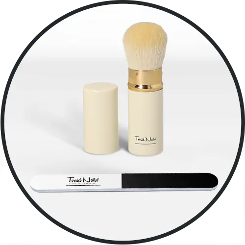Our kit has everything you need to create perfect nails from A to Z. They even come with a file and a brush!